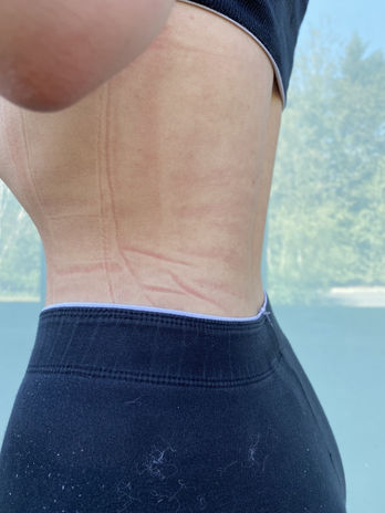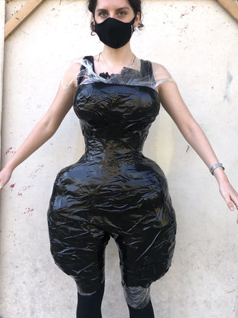 After making the duct tape cast I attempted to create an outer layer to build a latex unitard on top of as I had planned in my mind map. First attempt was toy stuffing, cling film as a barrier and dipping bandages in latex. the bands were not wrapping round the silhouettes curves properly and the bands were also not long enough. I found a sack with the same material and dipped it in the latex and wrapped round the body however the second it was dipped in latex it became too heavy and when dry completely lost the shape underneath instead of conforming to it. final attempt I taped up the body model and filled with expanding builders foam, leaving days in between to let dry and top it up as I wasn't sure how far it would expand. when I came to cutting the duct tape off a reation had happened where I must have missed a gap wrapping the cling film. the protective barrier wasn't there and the sticky area on the duct tape has merged with the expanding foam to create a puss like green consistency.